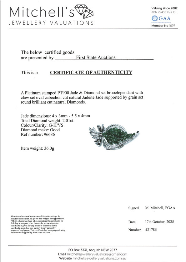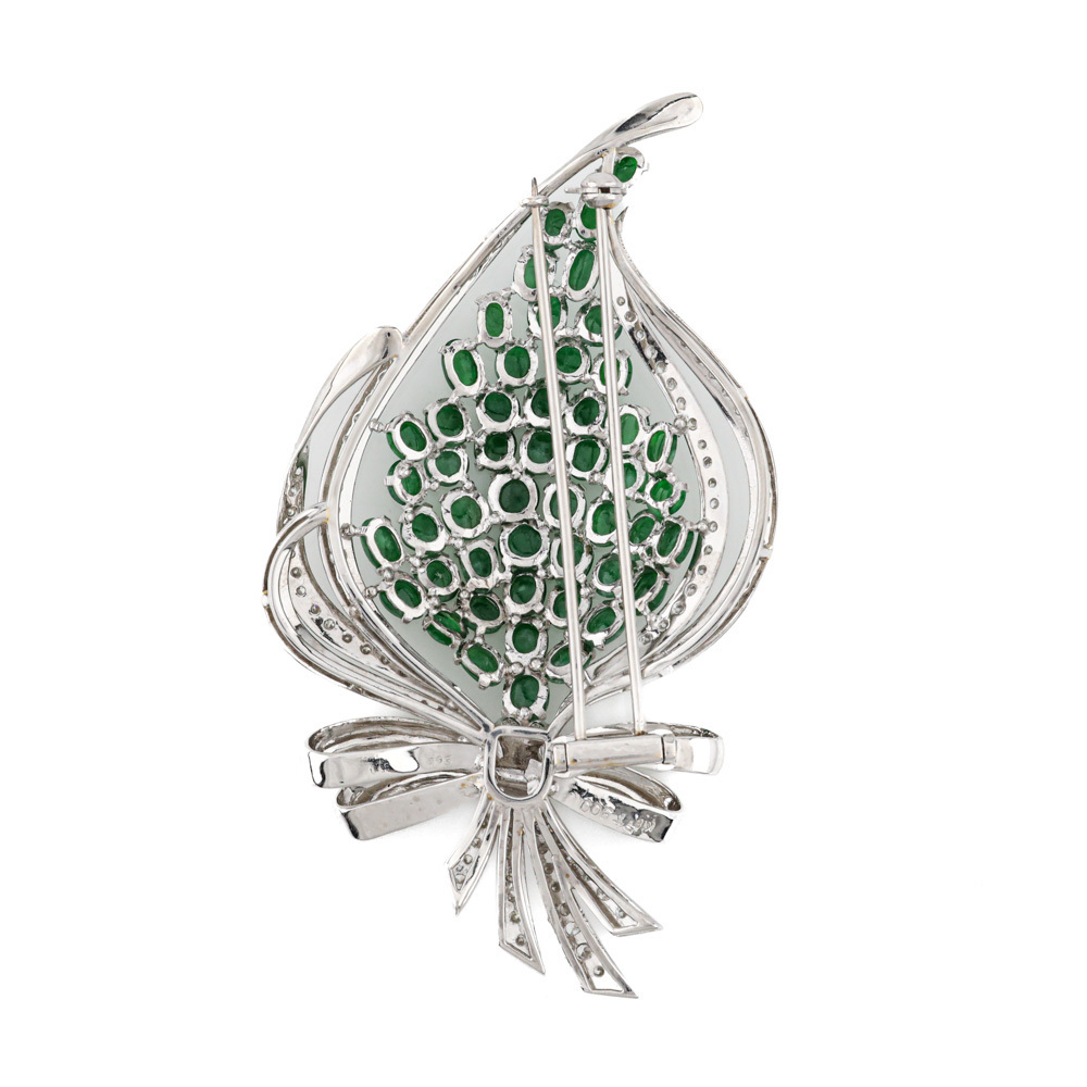 Lot 396Green Jadeite Jade & Diamond Brooch
