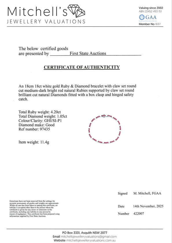 • 4.20ct Ruby & 1.05ct Diamond Bracelet