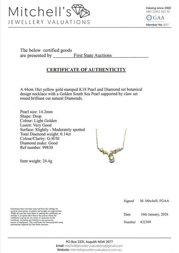 • 14.2mm South Sea Pearl Necklace 18ct Gold 24.4g