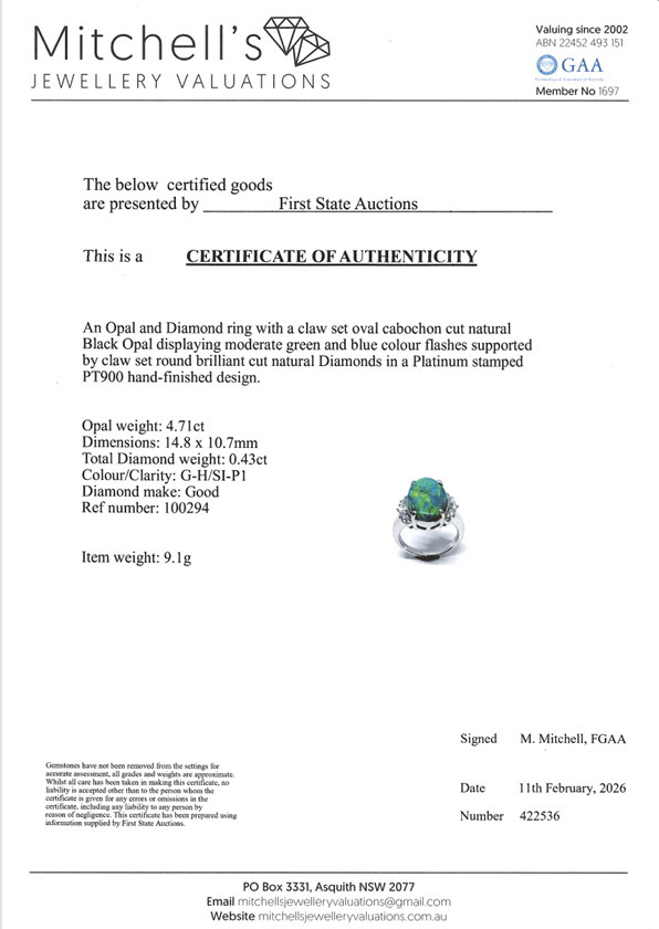 Lot 3504.71ct Black Opal & Diamond Ring