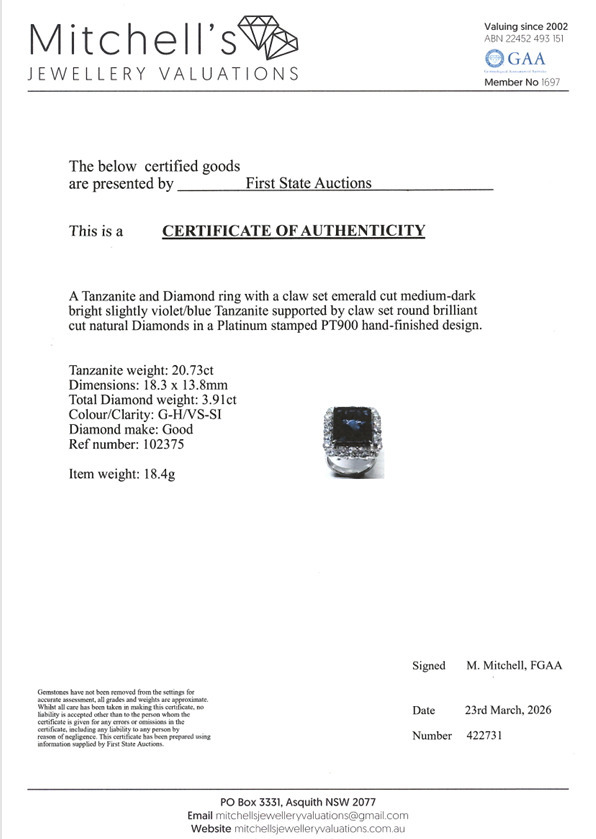 Lot 24220.73ct Tanzanite & 3.91ct Diamond Ring
