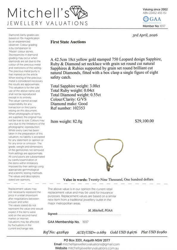 Lot 263Sapphire, Diamond & Ruby Leopard Necklace