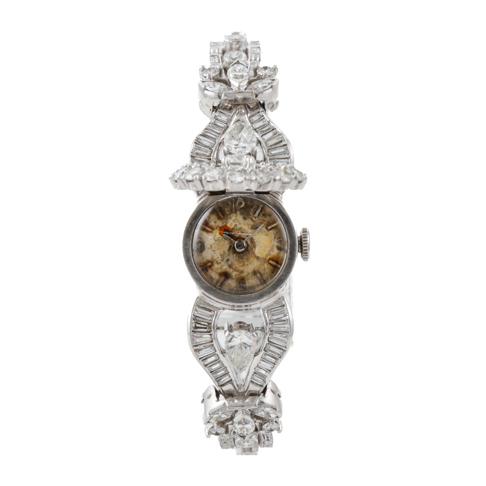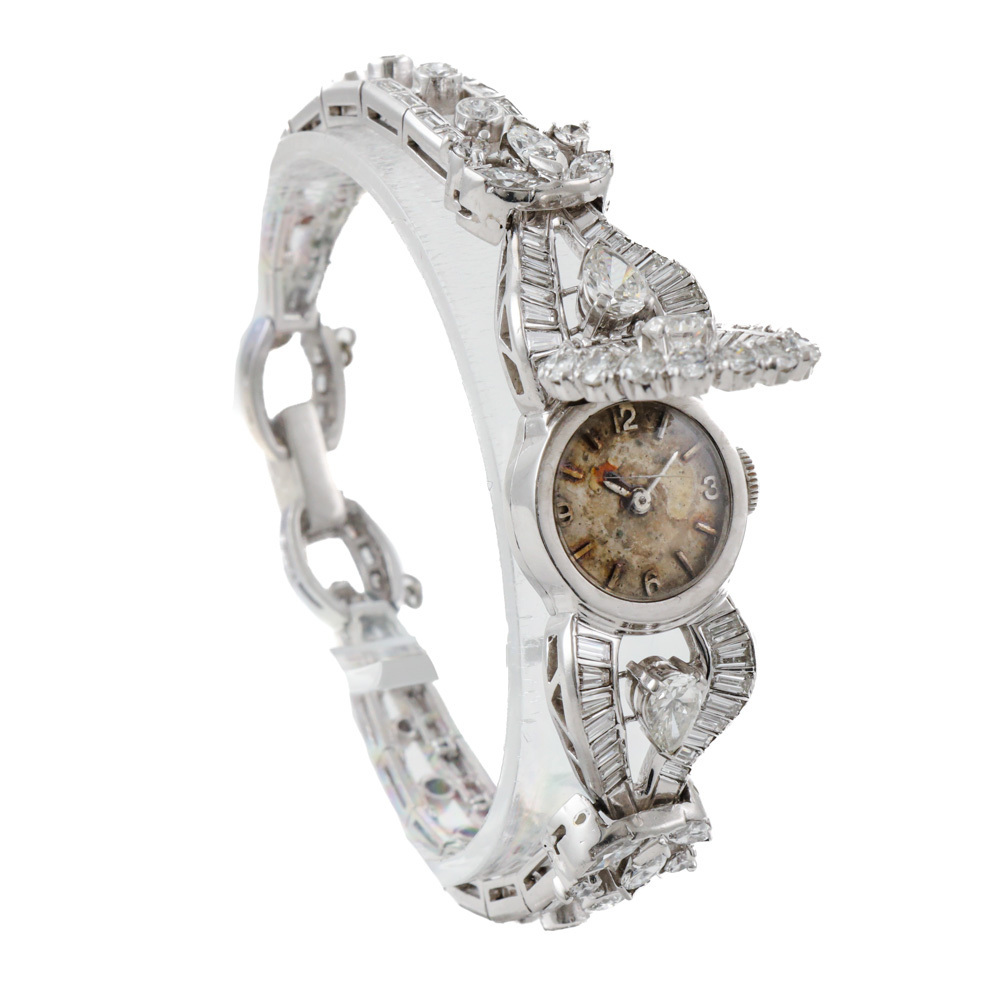 Lot 1046.80ct Diamond Dress Watch Bracelet, Platinum 50.2g