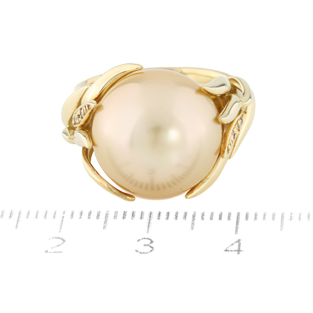 Lot 21714.9mm Golden South Sea Pearl & Diamond Ring