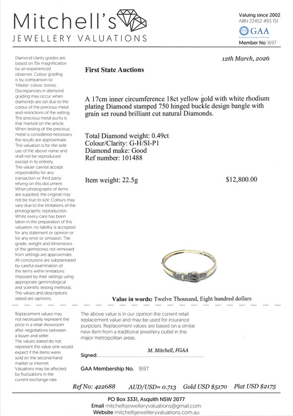Lot 259Diamond Buckle Bangle 18ct Gold