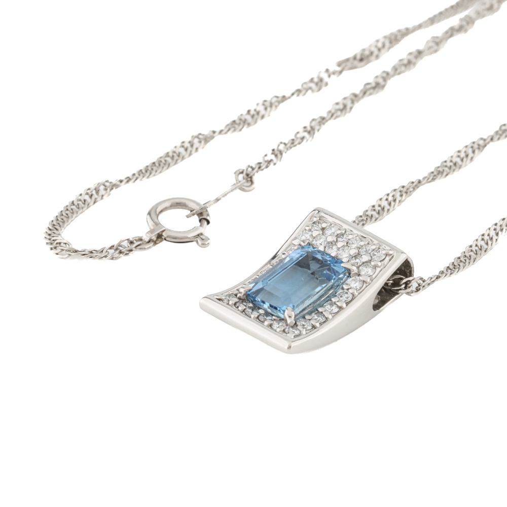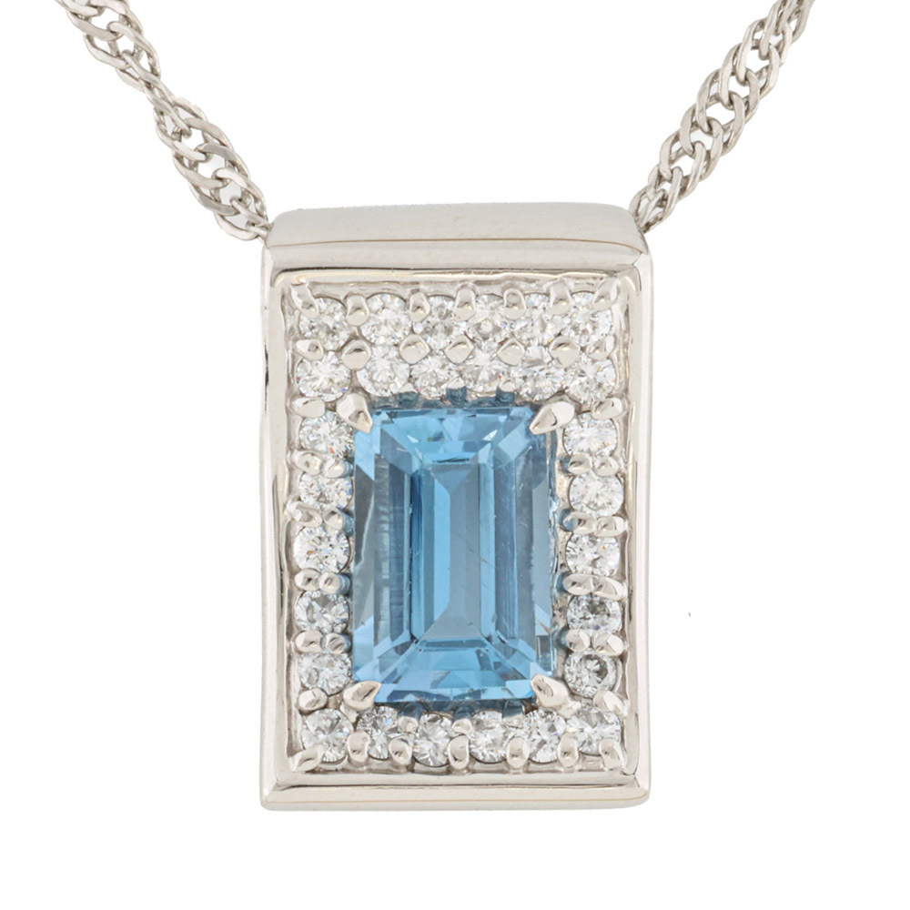 • Emerald Cut Aquamarine & Diamond Pendant - 2
