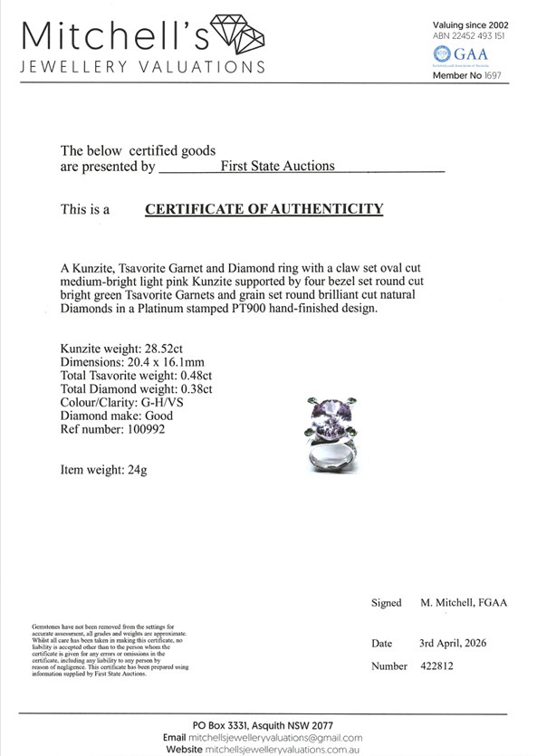 • 28.52ct Kunzite, Garnet & Diamond Ring - 3