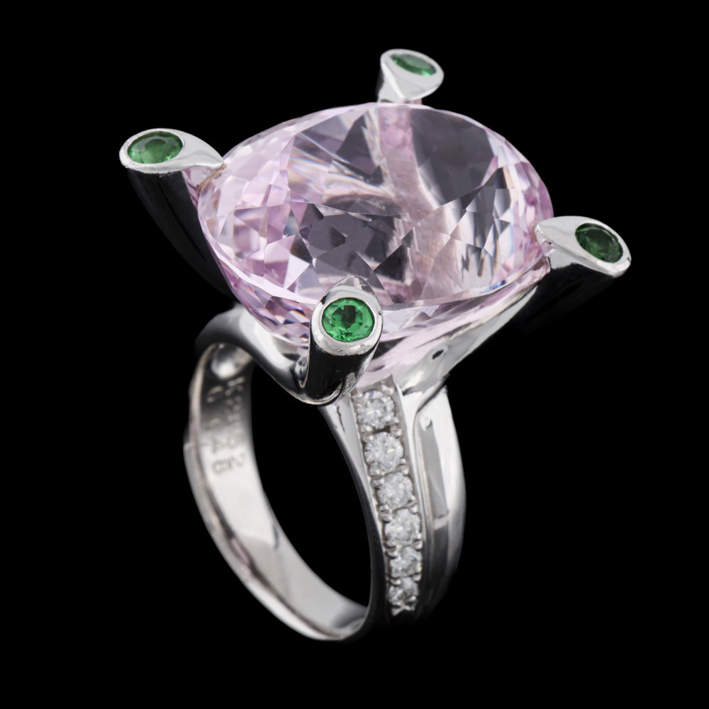 • 28.52ct Kunzite, Garnet & Diamond Ring