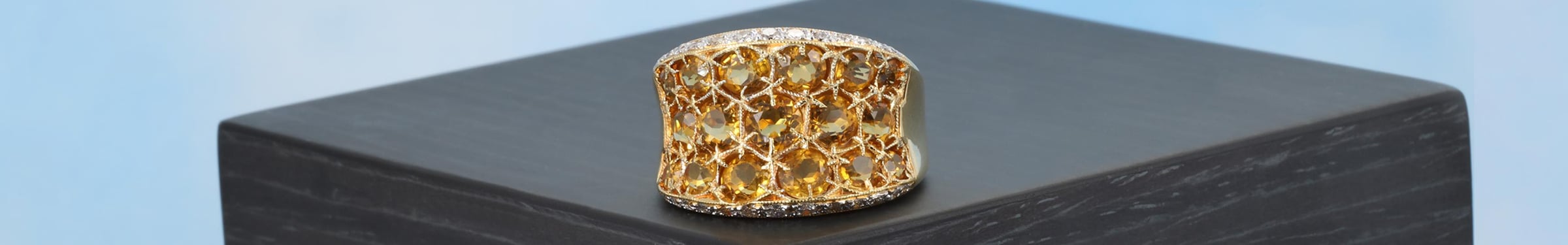 Citrine resides in the yellow end of the quartz spectrum, and is one of the world's most popular and affordable gemstones. The link from name to yellow colour seems logical, although most citrines tend to be less 'citrus' in colour and more of a golden nature – making them ideal for modern jewellery.