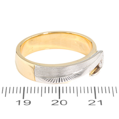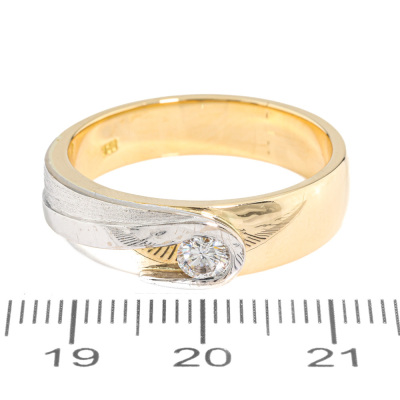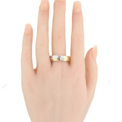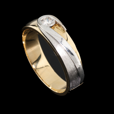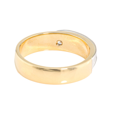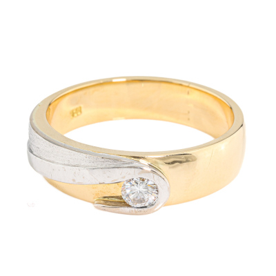 Two-tone band ring with a round Natural Diamond of approximately 0.40ct. 18ct yellow & white gold. Ring size X 1/4. Band width: 5.5mm - 6mm. Weight: 12.5g. (Pre-owned)