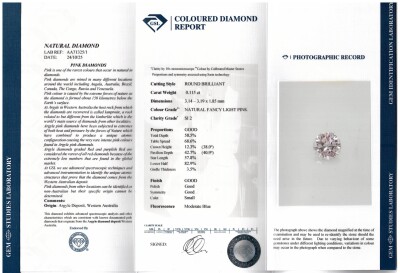 A Loose round Natural Argyle Origin Pink Diamond of 0.11ct (With GSL Report graded as Natural Fancy Light Pink SI2 #AA71325/1. Origin: Argyle Deposit, Western Australia).