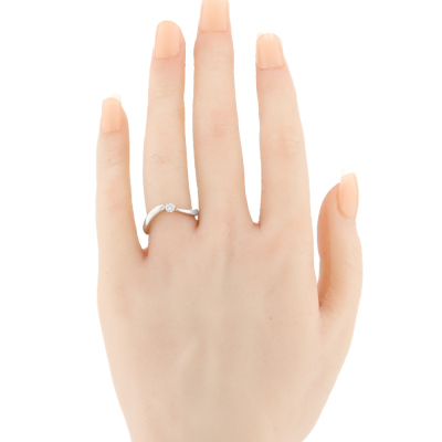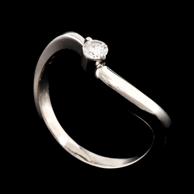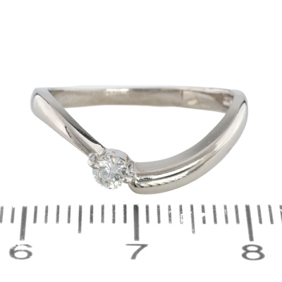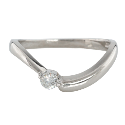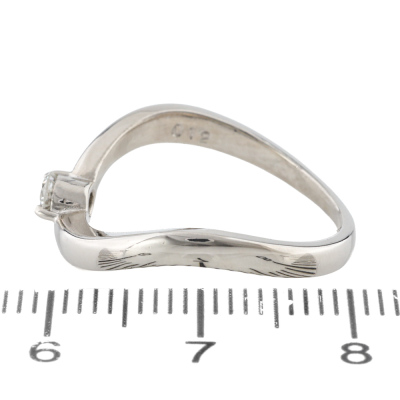 Diamond wavy ring with round natural Diamond of 0.12ct. Platinum - 900. Ring size: M3/4. Band width: 2.0mm - 2.5mm. Weight: 4.2g. (pre-owned)