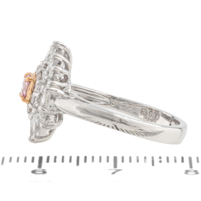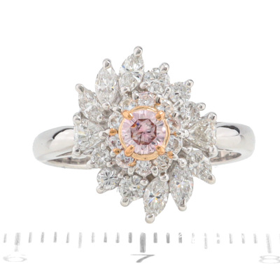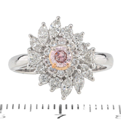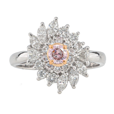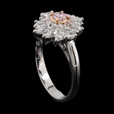Diamond ring with a centre round Argyle Origin Natural pink Diamond of 0.17ct (with GSL report graded as Natural Fancy Pink P1 #AA71374/5. Origin: Argyle Deposit, Western Australia) and round, trilliant & marquise cut Natural Diamonds totalling 0.78ct (Estimated grading: G VS-SI). Platinum 900 with rose gold plating. Ring size K. Band width: 2.6mm-2.3mm. Weight: 5.3g.