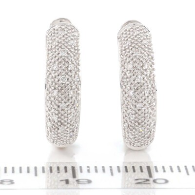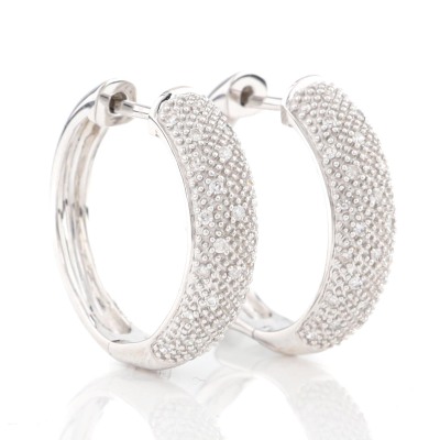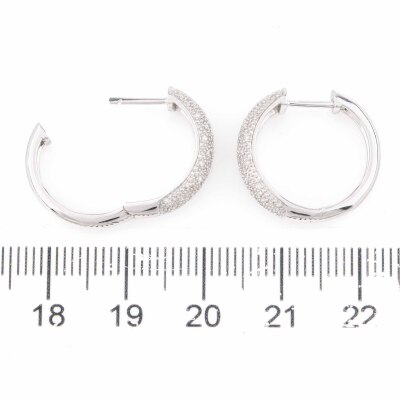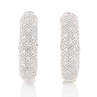 Diamond hoop earring with round Natural Diamonds totalling approximately 0.20ct. Diameter: 1.8cm. 9ct white gold. Weight: 3.9g (As New)**