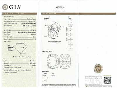 A loose cushion cut Natural Diamond of 0.26ct (With GIA Report graded as Natural Fancy Brownish Purplish Pink P3, Even #7458613907). (As New)