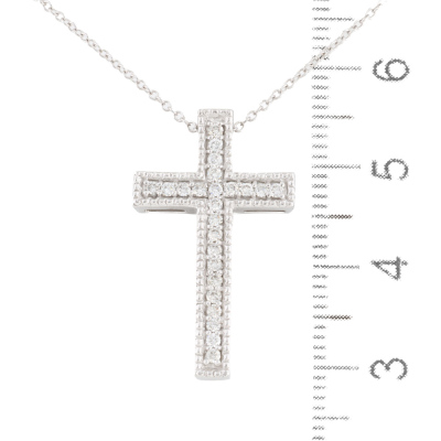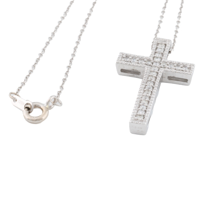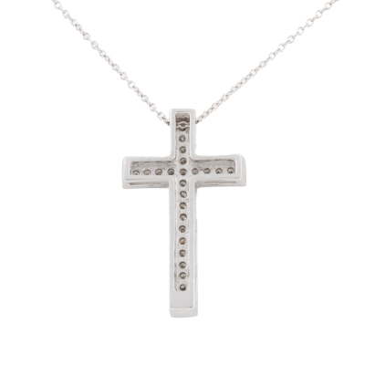 Diamond cross pendant with round Natural Diamonds totalling 0.29ct. 18ct white gold with 18ct white gold 40.5cm chain. Weight: 5.0g.