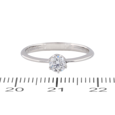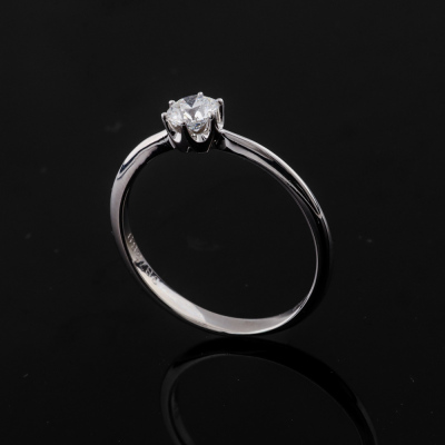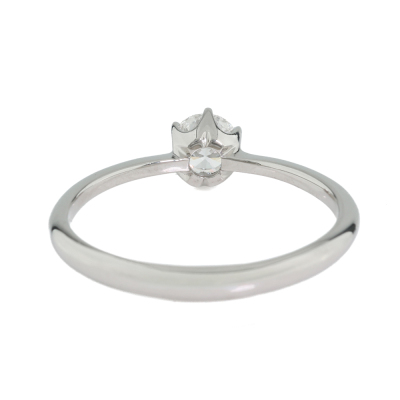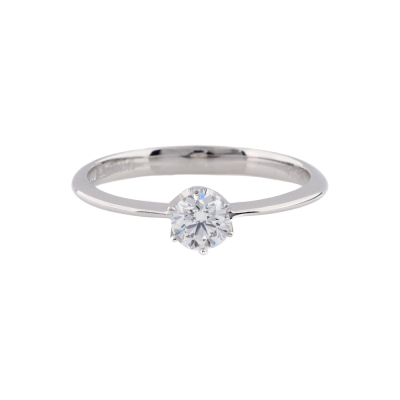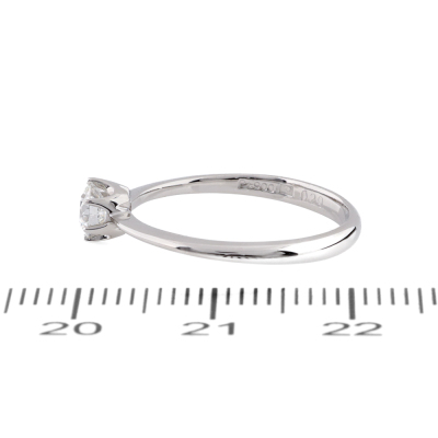 Diamond solitaire ring with a round Natural Diamond of approximately 0.29ct. Platinum 900. Ring size K3/4. Band width: 2.2mm - 1.2mm. Weight: 2.2g. (As New)