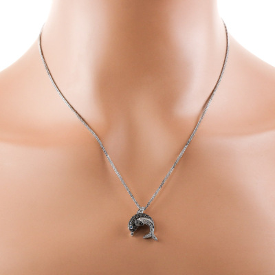 0.30ct Black & White Diamond Dolphin Pendant