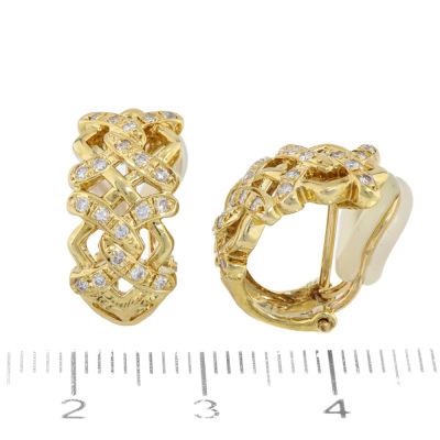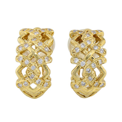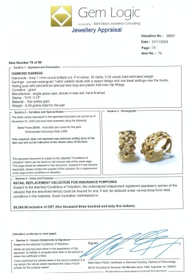 Clip-on earrings (with foldable posts for both pierced & non-pierced ears) with round Natural Diamonds totalling 0.30ct (Estimated grading: F-H SI). 18ct yellow gold. Weight: 6.3g. With Valuation Certificate dated 07/11/2025. (Pre-owned)