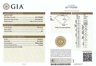A loose emerald cut natural Diamond of 0.30ct (with GIA Diamond summary report graded as D SI1# 6511953685). (New)