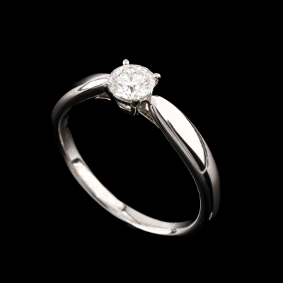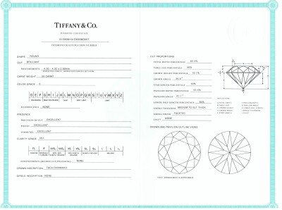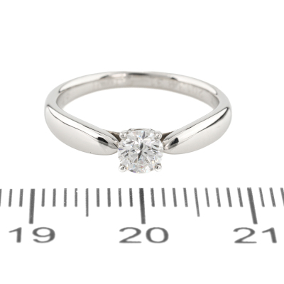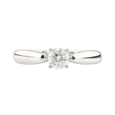 Tiffany & Co. Harmony Diamond Engagement ring with round brilliant cut Natural Diamond of 0.30ct (with Tiffany & Co. Diamond Certificate graded as E VS1 #31280915/O03060057). Platinum - 950. Measured ring size I 3/4. With personal engraving 'S to H'. Weight: 3.6g. With Tiffany & Co. inner & outer box. With Tiffany certificate & purchase card dated: 31/08/2013. (Pre-owned)