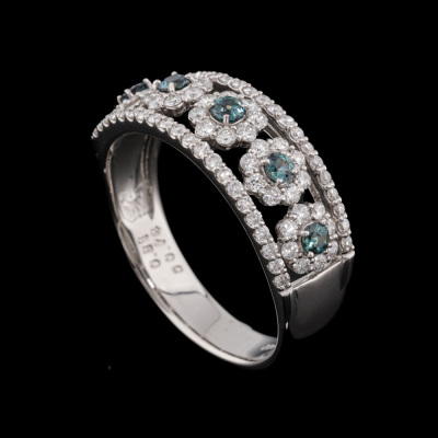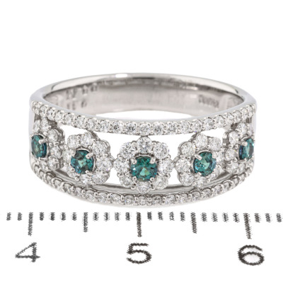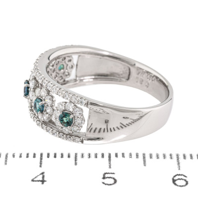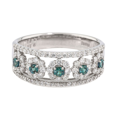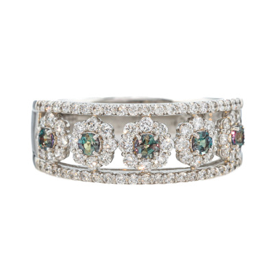 Alexandrite and Diamond ring with round Natural Alexandrite totalling 0.31ct (moderate colour change from bluish-green to purplish-pink) and round Natural Diamonds totalling 0.74ct (Estimated grading: G SI). Platinum -900. Ring size R 1/4. Band width: 4.2mm - 6.0mm. Weight: 7.5g. (Pre-owned)
