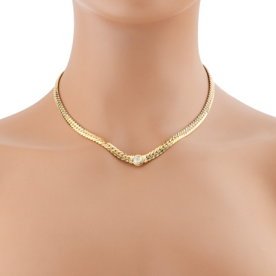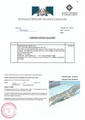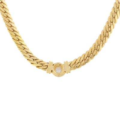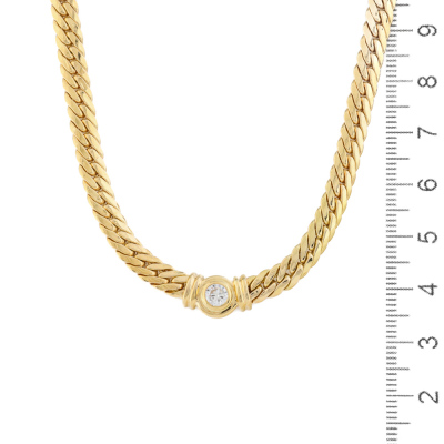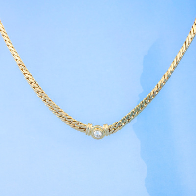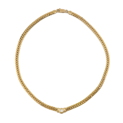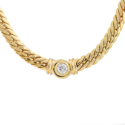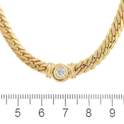 Diamond necklace with a round Natural Diamond of 0.31ct (Valuation Certificate graded as: H VS. FSA estimated grading: I-J VS-SI). 18ct yellow gold. Length: 43cm. Weight: 19.2g. With Valuation Certificate dated 13/01/99. (Pre-owned)