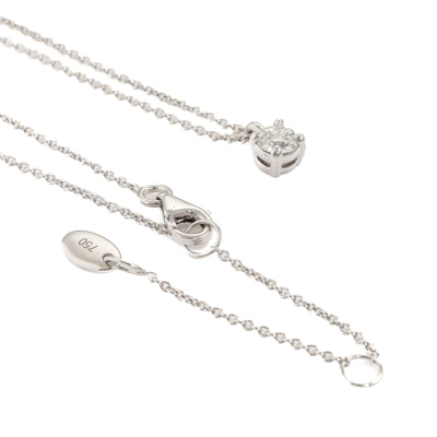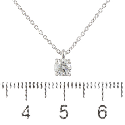 Diamond solitaire pendant with a round brilliant cut Natural Diamond of 0.31ct (with GIA Dossier Report graded as G SI1 #7431591217). 18ct white gold with maximum 45cm 18ct white gold adjustable chain. Weight 3.1g. (As New)