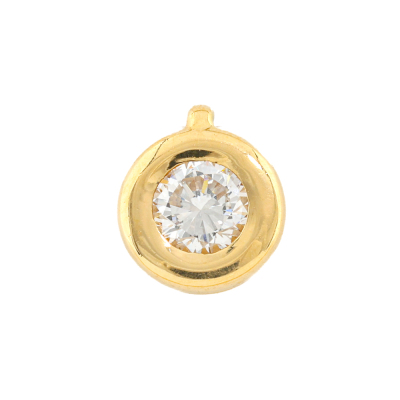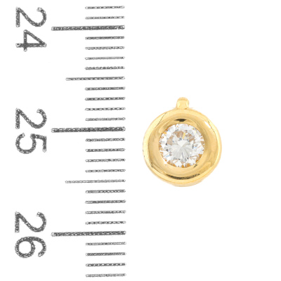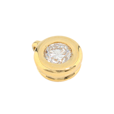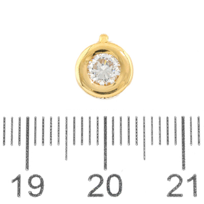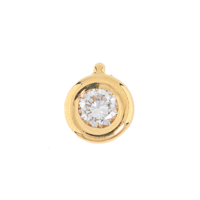 Diamond solitaire pendant with a bezel set round brilliant cut Natural Diamond of approximately 0.33ct (Estimated grading: H-I SI). 18ct yellow gold. No chain provided. Weight: 1.3g. (Pre-owned)