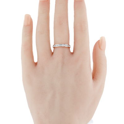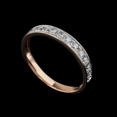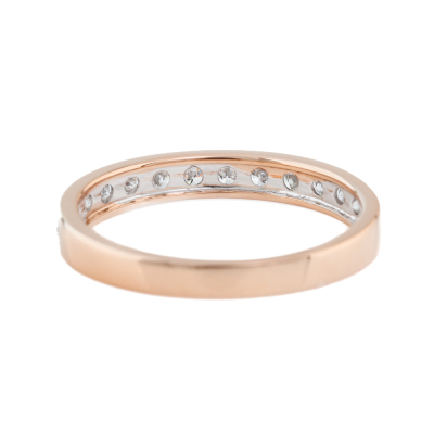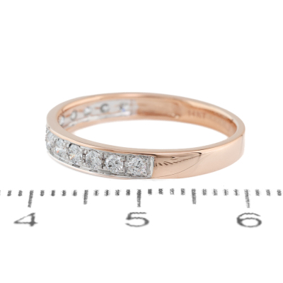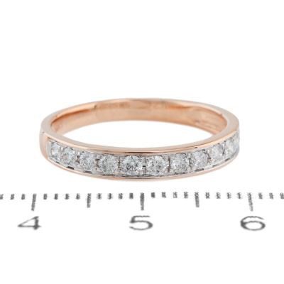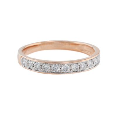 Diamond half eternity ring with 13 round Natural Diamonds totalling 0.34ct (Estimated grading: H SI). 14ct rose gold with rhodium plated claw setting. Ring size: M. Band width: 2.4mm - 2.6mm. Weight: 1.8g (New)