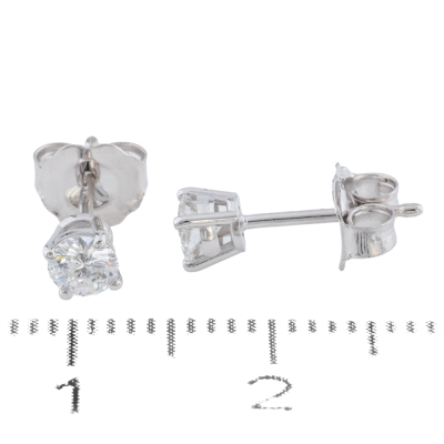 Diamond stud earrings with 2 round brilliant cut Natural Diamonds totalling 0.34ct (Estimated grading: G-H VS). 18ct white gold. Weight: 0.7g.