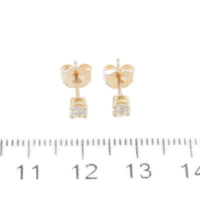 Diamond stud earrings with 2 round brilliant cut Natural Diamonds totalling 0.35ct (Estimated grading: J-K SI). 18ct yellow gold. Weight: 0.8g. (New)