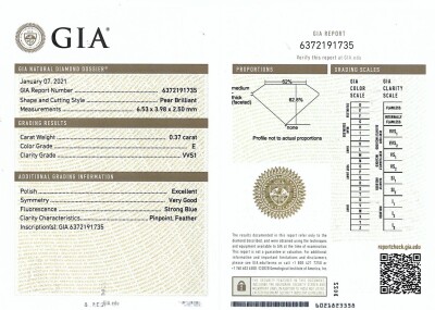 A loose pear shape Natural Diamond of 0.37ct (with GIA Dossier Report graded as E VVS1 #6372191735). (New)