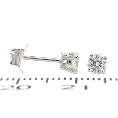 Diamond stud earrings with 2 round brilliant cut Natural Diamonds totalling 0.39ct (Estimated grading: H SI). 18ct white gold. Weight: 0.7g. (New)