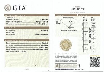 A loose marquise cut natural Diamond of 0.40ct (with GIA Diamond Dossier report graded as E Internally Flawless# 6471029264). (New)