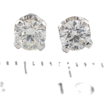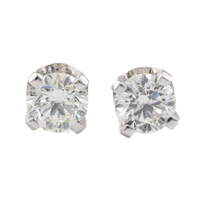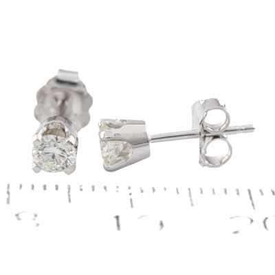 Diamond stud earrings with 2 round brilliant cut Natural Diamonds totalling 0.41ct (Estimated grading: H-I SI). 18ct white gold. Weight: 1.1g. (New)