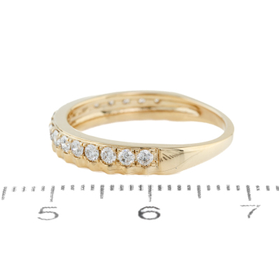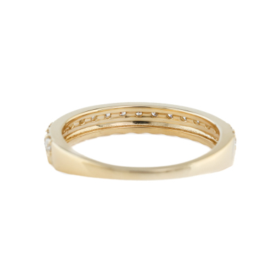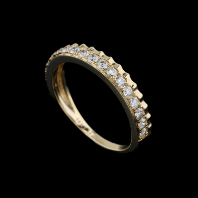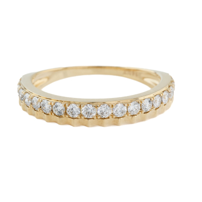 Diamond half eternity ring with 18 round Natural Diamonds totalling 0.42ct (Estimated grading: H-I SI-P1). 14ct yellow gold. Ring size: M1/2. Band width: 1.5mm - 3.2mm. Weight: 2.5g. (New)