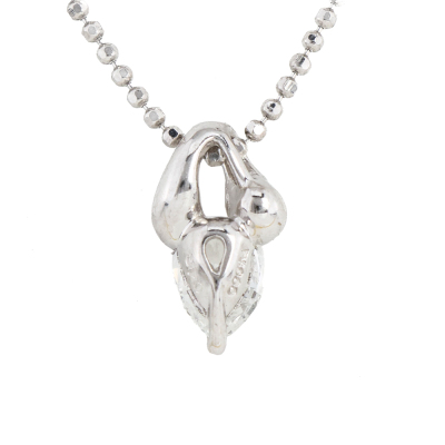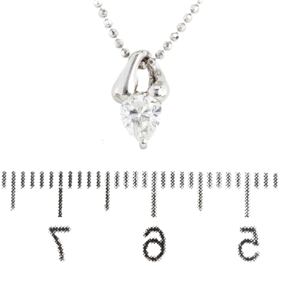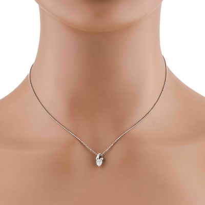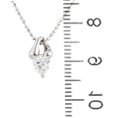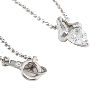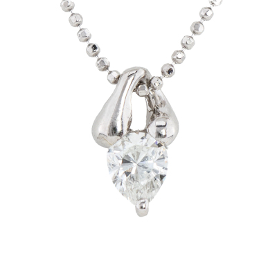 Diamond solitaire pendant with pear shape Natural Diamond of 0.42ct (Estimated grading: G SI). Platinum - 900 with 36cm - 40cm Platinum - 850 adjustable chain. Weight: 3.4g. (As New)