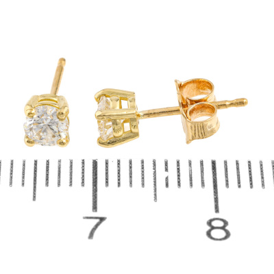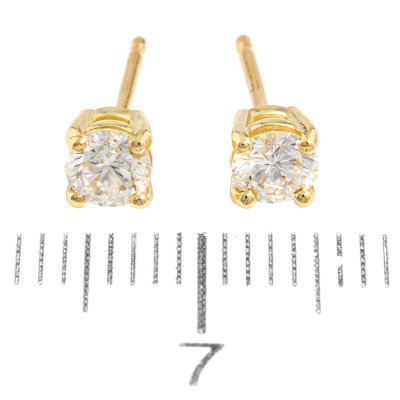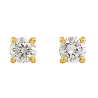 Diamond stud earrings with 2 round brilliant cut Natural Diamonds totalling 0.43ct (Estimated grading: G-H SI). 18ct yellow gold. Weight: 0.8g. (New)