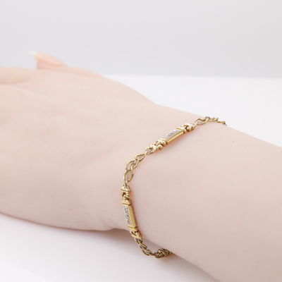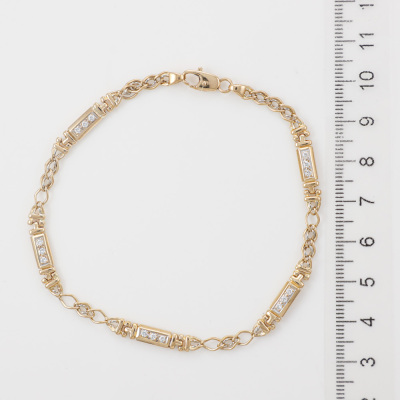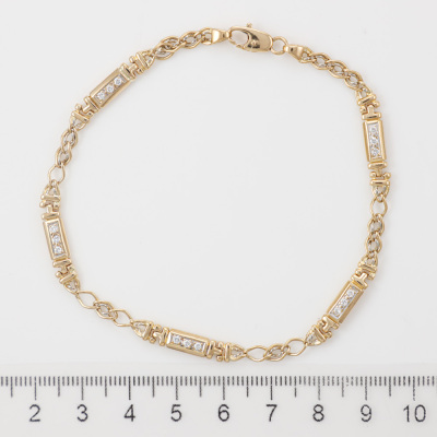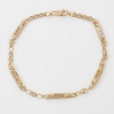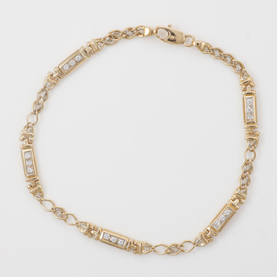 Diamond bracelet with round Natural Diamonds totalling approximately 0.45ct (Estimated grading: H SI). 18ct yellow gold. Length: 22cm. Weight: 11.6g. (Pre-owned)