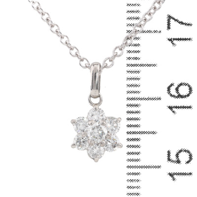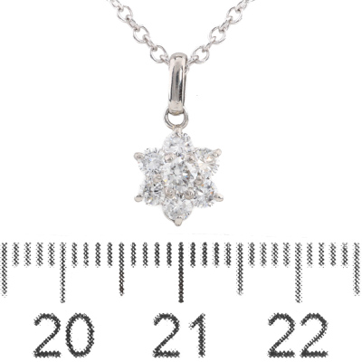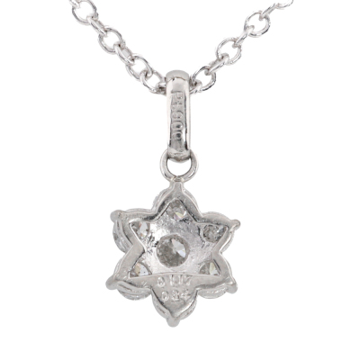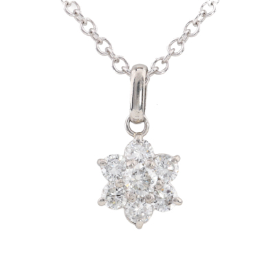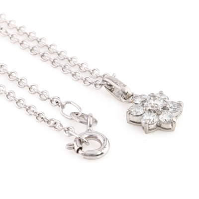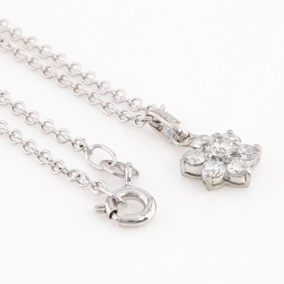 Floral design Diamond pendant with round Natural Diamonds totalling 0.45ct (Estimated grading: H SI). Platinum - 900 with 45.5cm 18ct white gold chain. Weight: 3.3g.