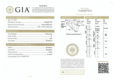 A loose round brilliant cut Natural Diamond of 0.45ct (With copy of GIA Diamond Dossier graded as E VS2 #1438387970).