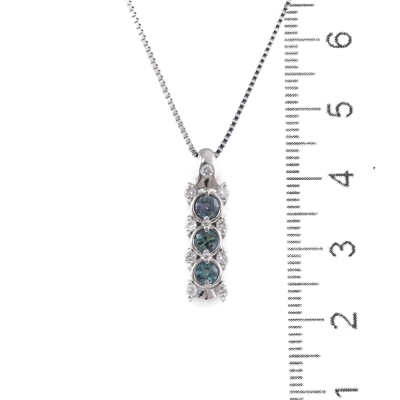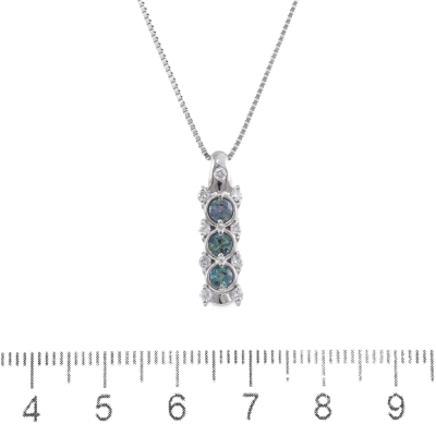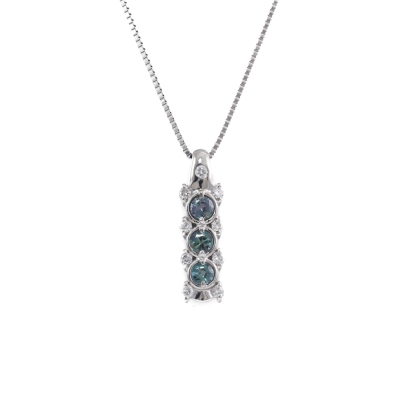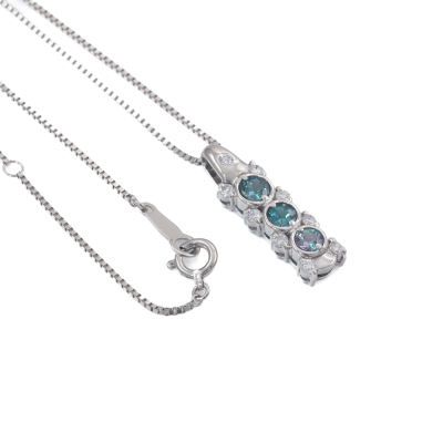 Alexandrite and Diamond pendant with 3 round Natural Alexandrite totalling 0.47ct (moderate colour change from bluish green to purple) and round Natural Diamonds totalling 0.18ct. Platinum - 900 with 40cm Platinum 850 adjustable chain. Weight: 5.5g. (Pre-owned)