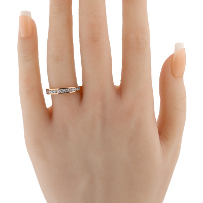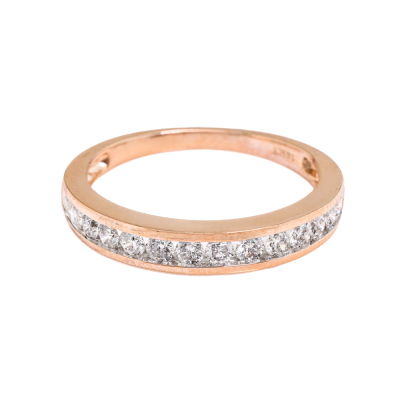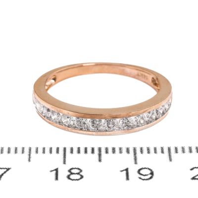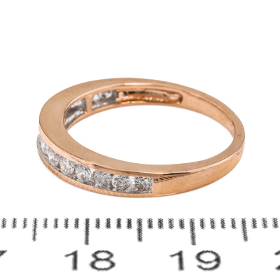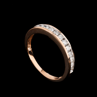 Diamond eternity ring with 14 round Natural Diamonds totalling 0.48ct (Estimated grading: I-J SI-P1). 14ct rose gold. Ring size: M½. Band width: 1.7mm - 2.8mm. Weight: 2.5g. (New)