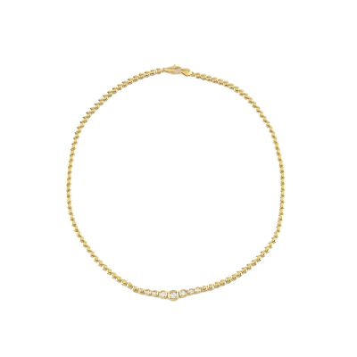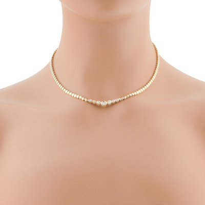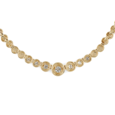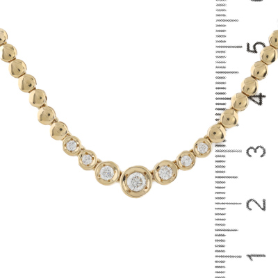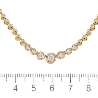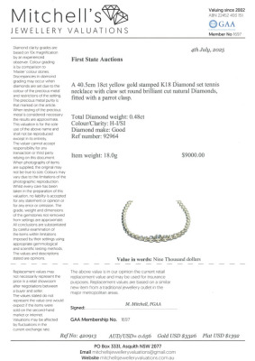 Diamond necklace with 7 graduated round Natural Diamonds totalling 0.48ct (Estimated grading: H-I SI). 18ct yellow gold. Length: 40.5cm. Weight: 18.0g. With Valuation Certificate #420913. (Pre-owned)