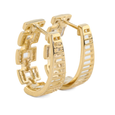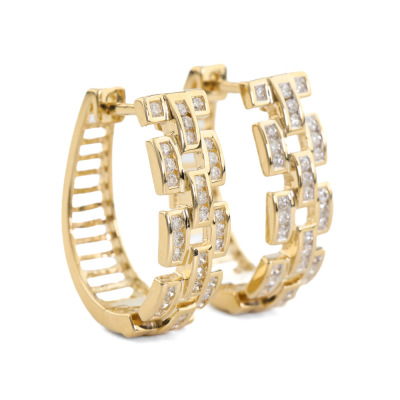 Diamond Hoop earrings with 64 round Natural Diamonds totalling 0.49ct (Estimated grading: H-I SI). 14ct yellow gold. Size: 2cm x 1.6cm x 0.6cm Weight: 6.1g. (New)