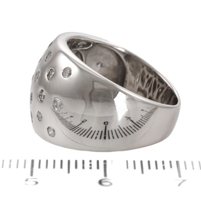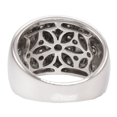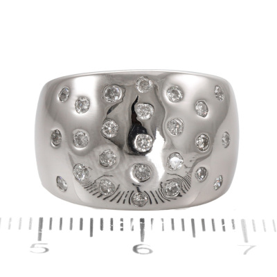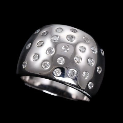 Diamond dress ring with round Natural Diamonds totalling 0.50ct (Estimated grading: H SI). 18ct white gold. Ring size L1/2. Band width: 4.8mm-10.1mm. Weight: 9.6g.