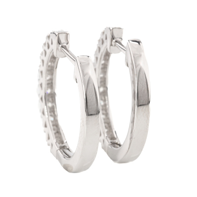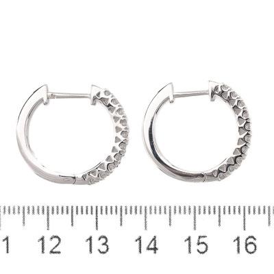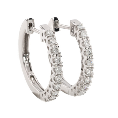 Diamond hoop earrings with 20 round Natural Diamonds totalling 0.50ct (Estimated grading: H-I SI-P1). 14ct white gold. Size: 2.1 x 2.3cm. Weight: 5.7g. (New).