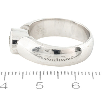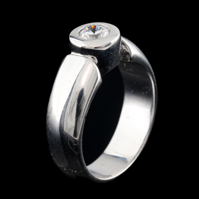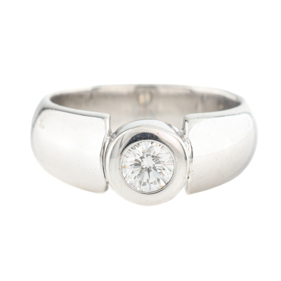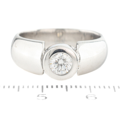 Diamond ring with round Natural Diamond totalling approximately 0.50ct (Estimated grading: H-I VS). 15ct white gold (XRF tested, no stamp). Ring size: P. Band width: 5.8mm - 7.0mm. Weight: 12.1g. (Pre-owned)
