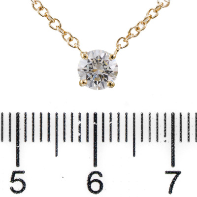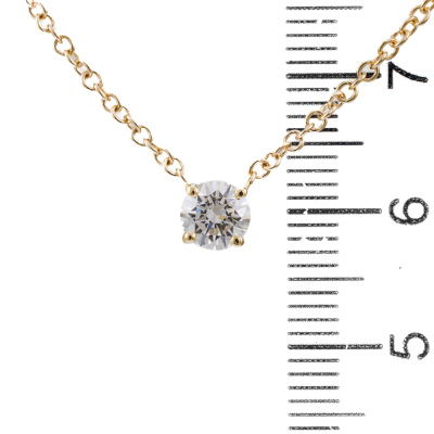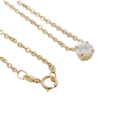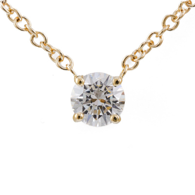 Diamond solitaire pendant with round brilliant cut Natural Diamond of 0.50ct (with GIA Diamond Dossier report graded as D Internally Flawless #1538366090). 18ct yellow gold. Length: 45.0cm. Weight: 2.9g (New)